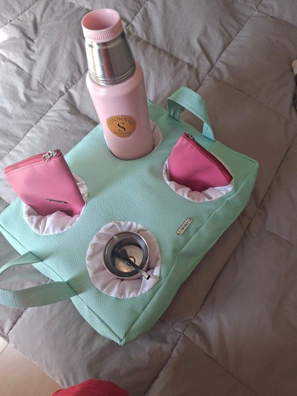 🫶Tiene 4 espacios para que coloques termo, mate, chaulatas o bowls para picar lo que te guste. 🧉 Interior relleno con vellón siliconado de la mejor calidad.